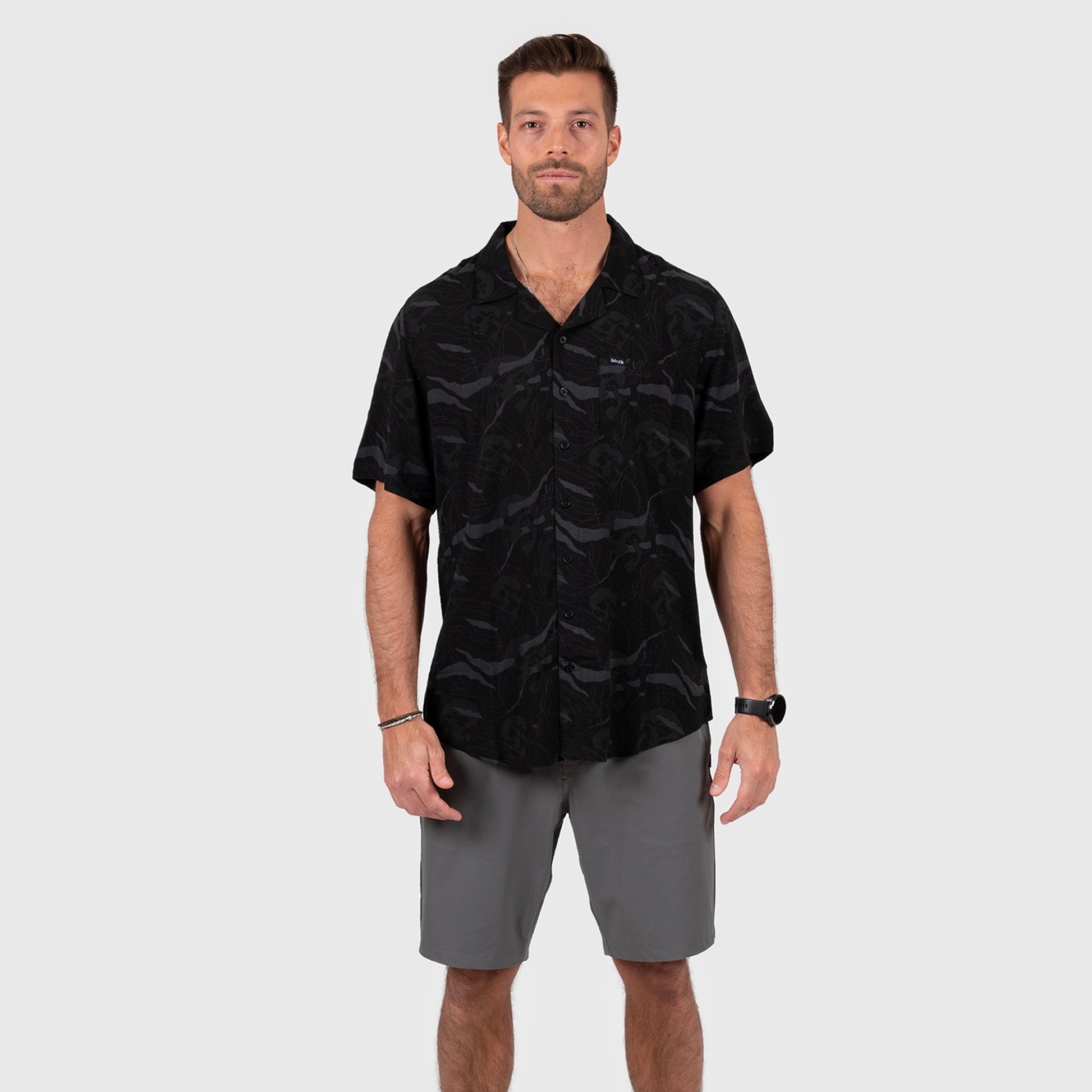 Esta camisa de viscosa con estampados tropicales añade un toque de estilo a tus looks. Ligera y ultra suave, es perfecta tanto para un look playero relajado como para vestir.