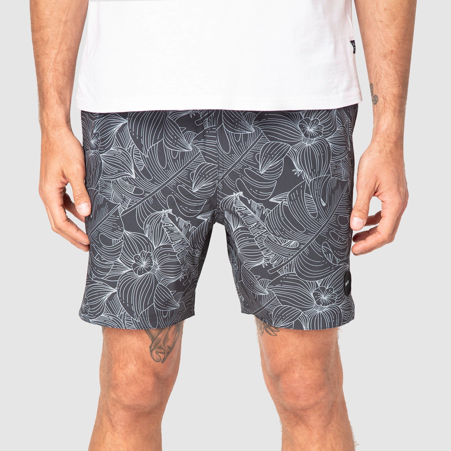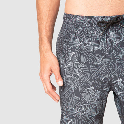 Este traje de baño con estampado tropical eleva tus looks veraniegos con su diseño vibrante. Cuenta con cintura elástica, cordón ajustable, bolsillos, malla interior y tecnología de secado rápido.